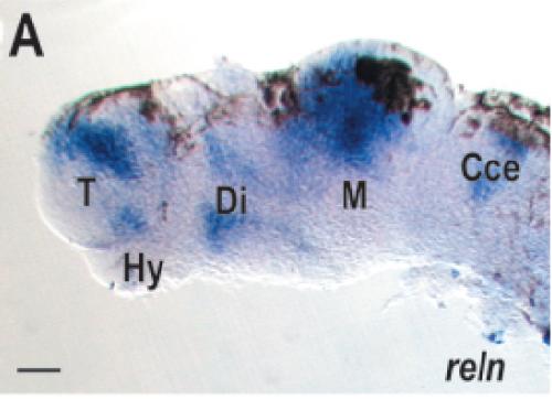 reln encodes a large secreted extracellular matrix signaling protein that regulates neuronal migration and laminar organization of the developing brain, directing placement of neurons and glial process...[+]