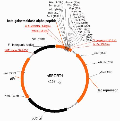 | Vector Details | Vector Map | Name: pSPORT1 Type: phagemid 5' Restriction Site: SalI 3' Restriction Site: NotI |