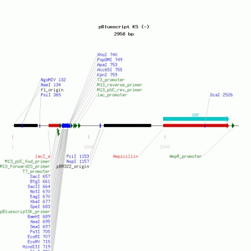 | Vector Details | Vector Map | Name: pBluescript KS- Type: phagemid 5' Restriction Site: null 3' Restriction Site: null |