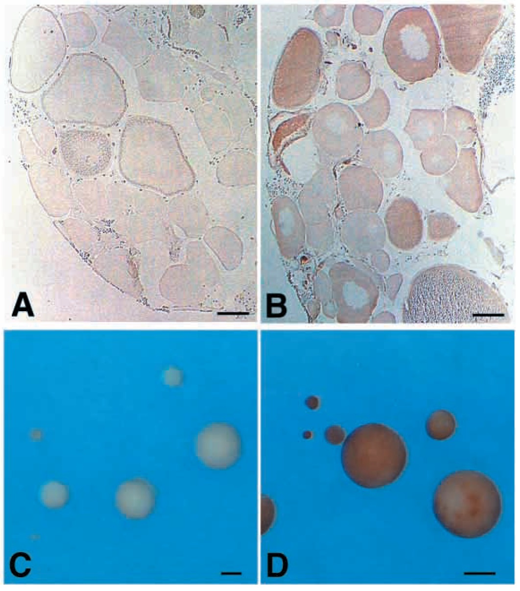 isolated oocytes. (A,B) Albino Xenopus ovary was fixed by the