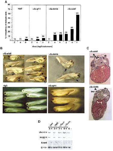 bars. (B) Embryos injected ventrally with 8 ng/blastomere of anti-Gas/olf, anti-Gai/o/t/z, or anti-Gaq/11 antibodies or normal rabbit IgG