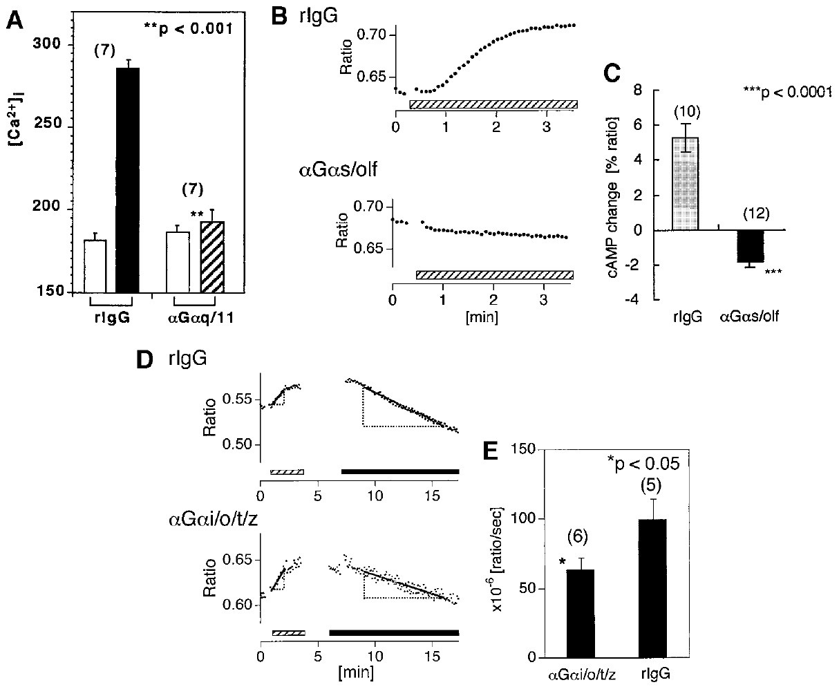polyclonal antibodies against Gaq/11 (Gq/11), Gas/olf (Gs/olf), and
