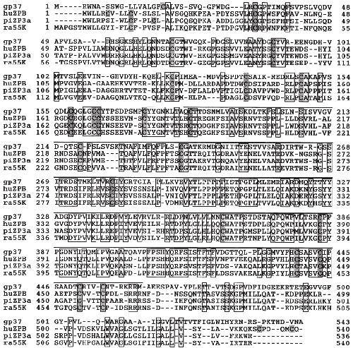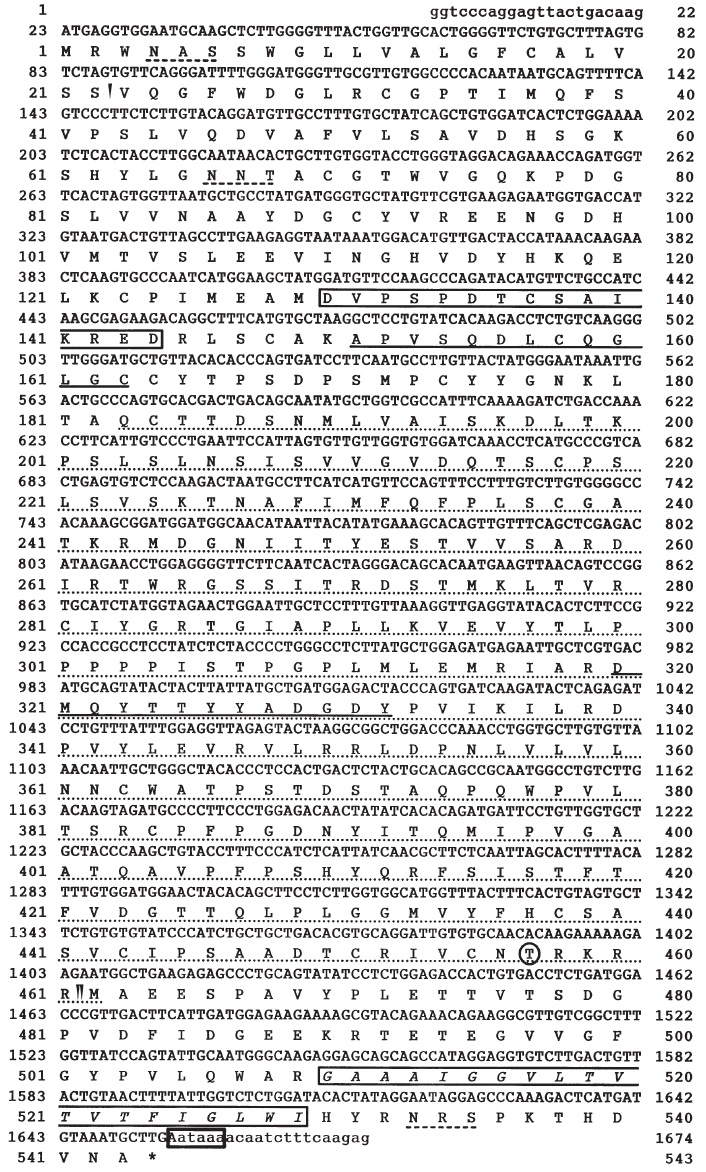 Fig. 1. Nucleotide sequence of gp37 cDNA and its deduced