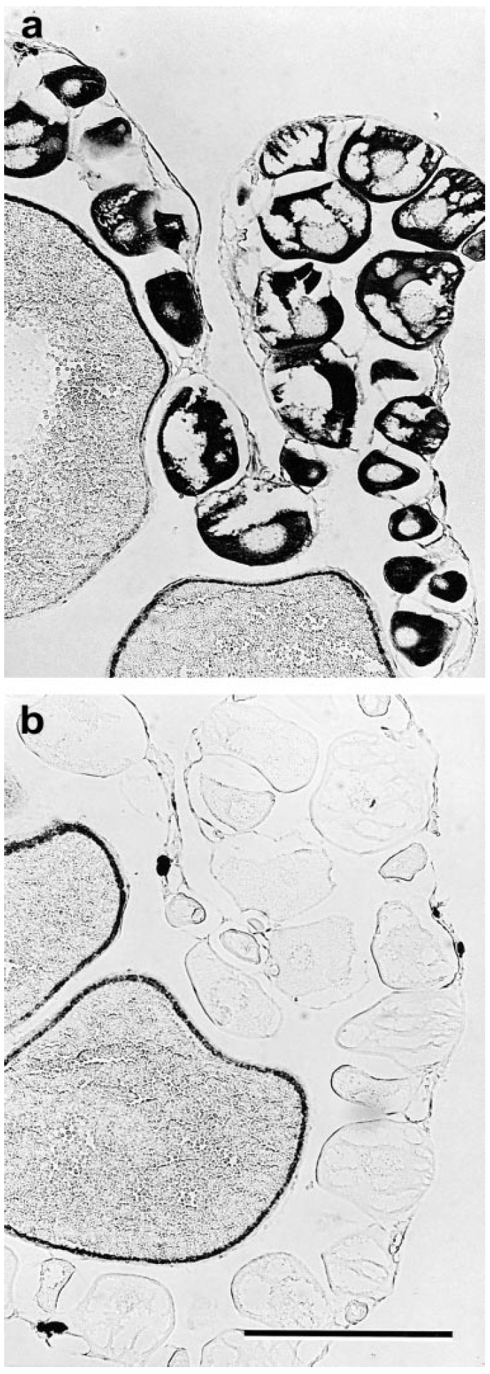 Fig. 4. Distribution of gp37 transcripts in the ovary by in situ