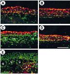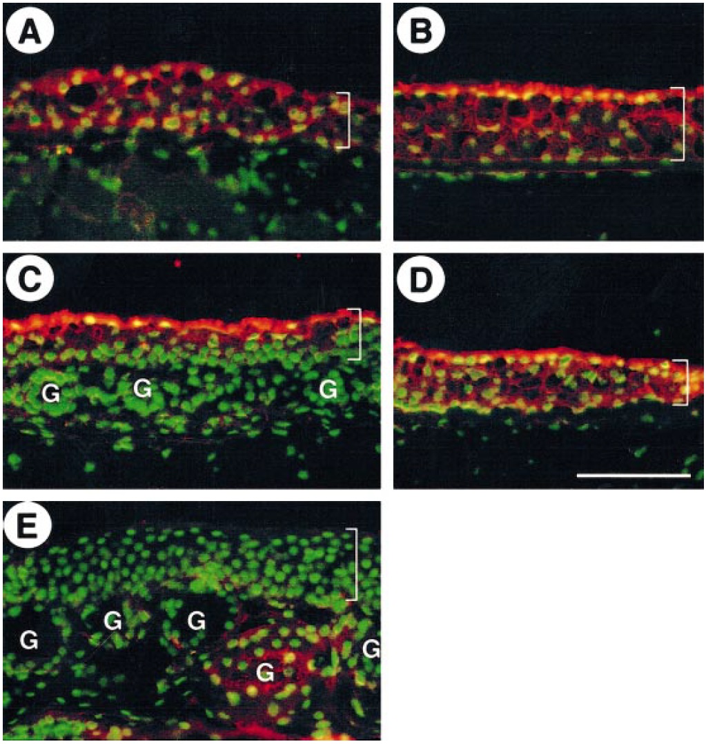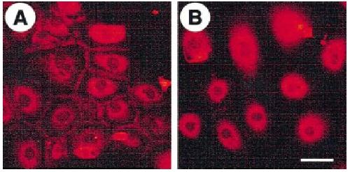 antipan-cadherin mAb (red signals). Bar, 50 μm.