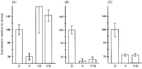 are normalized to that of the dorsal side for each experiment, and two to three sets of embryos were used for each condition in each
