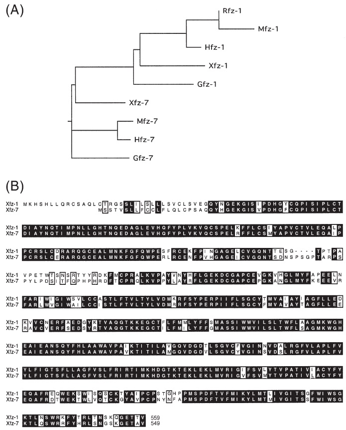 Xfrizzled-1 and Xfrizzled-7 proteins share 76% identity and 85%