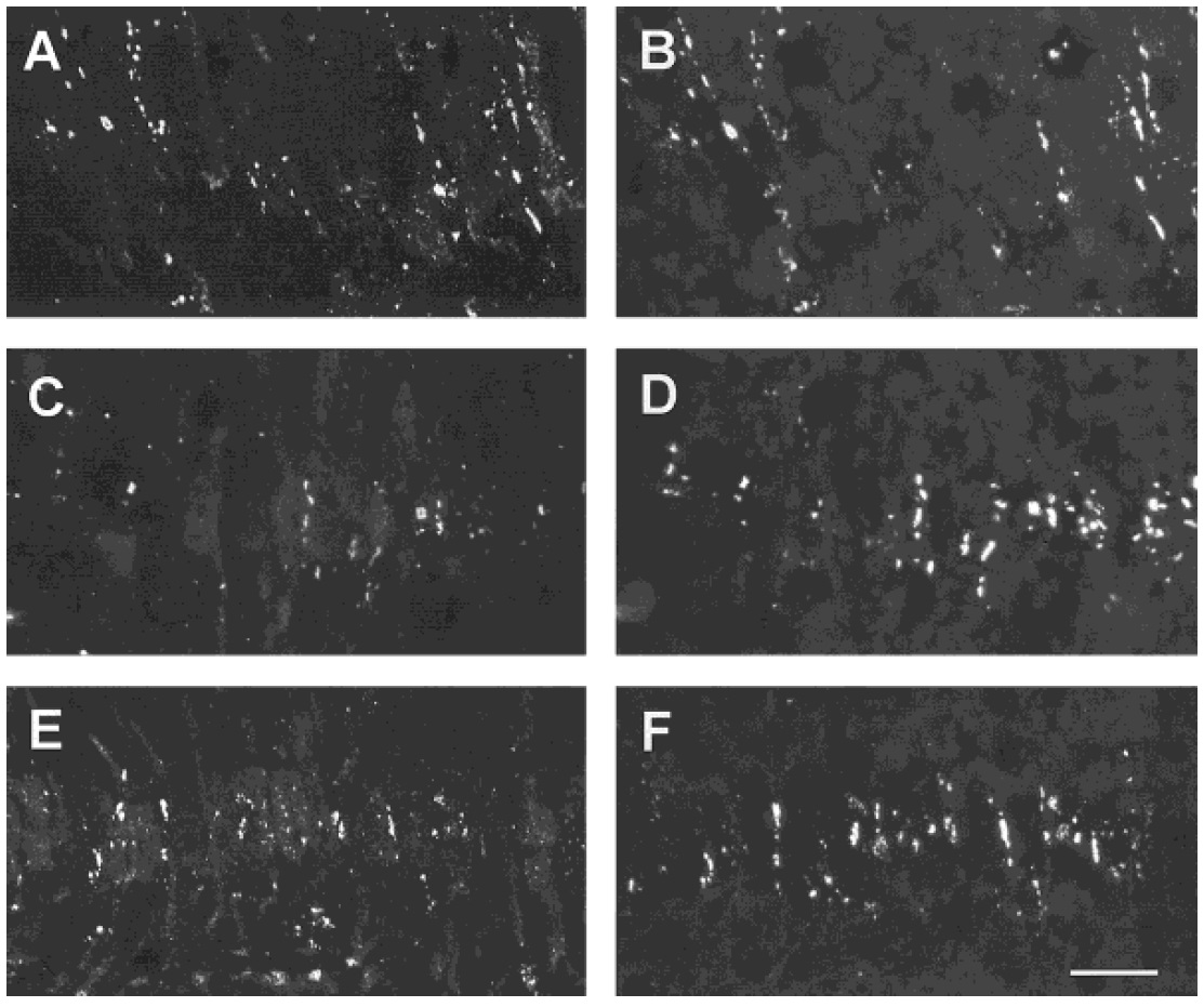 (A,C,E), where ectopic AChR aggregates (B,D,F) were induced, but was also seen in the synaptic
