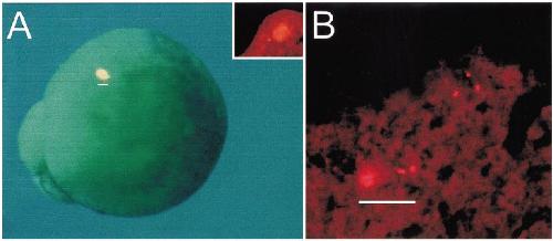 FIG. 4. DiI label in the superficial cell layer was detected in thin sections. (A) Whole-mount view of an embryo after injection of DiI at