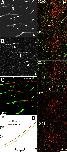 Figure 8. Translocating microtubules fail to transport F-actin in the absence of extract factors. (A) Time-lapse, dual-label fluorescence views of Alexa 488 phalloidin–labeled skeletal muscle F-actin/alpha actinin bundles (green) and microtubules (red) assembled from 99.5% porcine brain tubulin and 0.5% X-rhodamine–labeled tubulin that are gliding across a coverslip coated with rat brain kinesin. A microtubule translocates across the field of view, as judged by following the translocation of its speckle mark (arrow). En route, it makes contact with multiple F-actin bundles, three of which are indicated (#1–3). In spite of these multiple contacts, the moving microtubule does not transport any F-actin bundles. (B) Plot of the distance of the microtubule speckle mark (arrow in A) and of the three different F-actin bundles indicated in A (#1–3) from the origin (position of the speckle at time 00:00) vs. time. This demonstrates that the contact with the microtubule doesn't change the position of the actin bundles. Also see supplemental video 13 at http://www.jcb.org/cgi/content/full/150/2/361/DC1. |