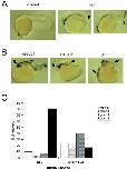 Fig. 3. Overexpression of oep causes posterior truncations (A) and inhibits hyperdorsalization by cyc in zebrafish embryos (B,C). (A) Uninjected control (left) and oep mRNA-injected embryos (right) stained with an antisense shh probe. Truncation of the posterior body axis is depicted by arrowheads. (B) Representative examples of phenotypic groups observed after injection of cyc mRNA alone or together with oep mRNA. Embryos were hybridized to shh mRNA at 24 h of development and are shown anterior to the left and dorsal side up except for group III embryos which are shown animal pole up. Ectopic shh expression is labelled with arrows. (C) Bar diagram depicting the frequency of group IâIII phenotypes caused by injection of cyc mRNA (n=323) or the combination of cyc and oep mRNA (n=238).