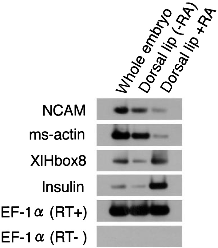 Fig. 3. Expression of marker genes in dorsal lip explants treated