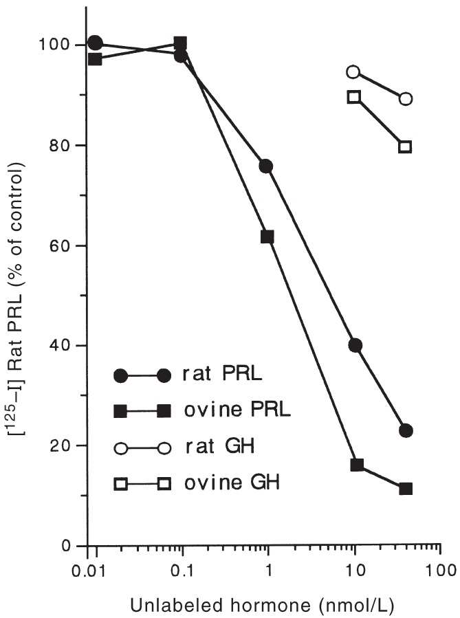 Fig. 2. Competitive binding of [125I] rat prolactin (PRL) to