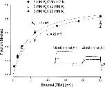 Figure 3. Interaction between external and internal TEA. Ordinate is the apparent dissociation constant for block by internal TEA at the indicated concentrations of external TEA. Error limits illustrated (when larger than symbol) are the estimated errors from the fitting routine (see methods). The dotted line is the expectation for no interaction between internal and external TEA. The dashed line is the expectation for competitive inhibition (). Solid line is the best fit of to the data with a value of Q of 4.6. |