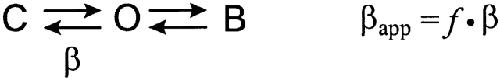 Figure 4. The amino terminus does not alter the ability of TEA to block current or to slow deactivation. (A, top) Tail currents from S620TΔ2-354 truncated channels evoked at −140 mV after depolarization to 60 mV, before and after application of 1 mM TEA to the internal bath solution. Arrows point to the instantaneous tail current levels. (Bottom) The same currents scaled to their peak amplitudes to illustrate the slowing of apparent deactivation rate by TEA. (B, top) Tail currents from channels with amino termini intact under same conditions as in A. (Bottom) The same currents scaled. (C) Box plot shows that mean values for percent slowing of deactivation (left) are predicted by corresponding percent current block (right) for both S620TΔ2-354 truncated channels and S620T channels with intact amino termini, indicating a lack of competition between the amino terminus and TEA in open-channel block (n = 3 for each construct, P > 0.2). The competition models describe a channel that cannot close until the blocking particle vacates its binding site (Scheme I), where C, O, and B are the closed, open, and blocked states, respectively, and β is the rate constant of the open-to-closed transition. SCHEME I Channels in the blocked state are unavailable for closing until they return to the open, unblocked state, and so the apparent deactivation rate βapp is reduced according to the expression βapp = f · β, where f is the fraction of channels in the open state. At the very negative voltages studied, we assume little return from the closed to the open state and βapp ≅ 1/τfast (see methods). The forward and reverse rates of block are assumed to be fast relative to β.