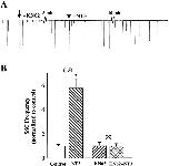 Figure 4. Effect of KN62 on NT3-induced synaptic potentiation. (A) A sample recording showing that pretreatment of the neuromuscular synapse with KN62 prevents the NT3-induced facilitation of transmitter release. (B) Blockade of NT3-induced synaptic potentiation of SSC frequency by KN62. In KN62 groups, the nerve–muscle cultures were pretreated with KN62 for 10–20 min before application of NT3. The number of synapses recorded are indicated above each pair of columns. In each experiment, SSC frequency was calculated from a 10-min recording period, and then the number after NT3 treatment was normalized to that before NT3 application. Asterisk indicates P < 0.01, t test.