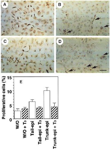 epidermal cells (Trunk-epi). Open columns represent the response to the epidermal cells cultured in the absence of hormone, and striped