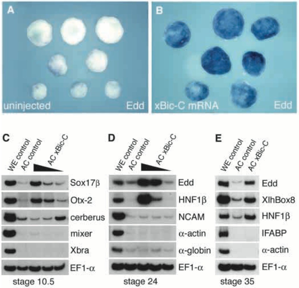 The Xenopus homologue of Bicaudal-C is a localized maternal mRNA that can induce endoderm formation.