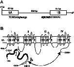 Figure 1 Structure and interactions of CACNB4. A, Intron/exon junctions for exons 1A and 1B. The indicated 5′ end of exon 1A corresponds to the translation-initiation site. The intron sequence is from GenBank (accession number AF216867). B, Locations of mutations in CACNB4. Two domains of CACNB4 that interact with the α1 subunit of the voltage-gated calcium channel are indicated. In the mouse lethargic mutant (designated as “lh”), the protein is truncated upstream of the major binding site. In human mutation R482X, the protein is truncated in the middle of a domain that interacts with the C-terminus of the α1A subunit.