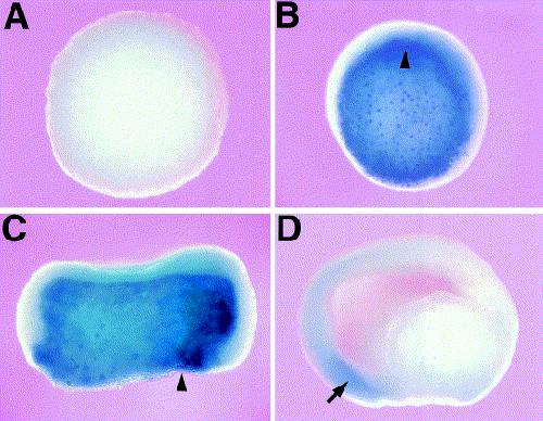 We report a novel zygotic gene encoding a Xenopus endodermal nuclear factor, Xenf. Expression of Xenf starts at the late blastula stages and is decreased after gastrulation. Xenf shows no structural homology to any known proteins. When GFP-tagged Xenf is overexpressed in Xenopus cells, Xenf protein is localized to the nucleus, associating closely with the chromosomes. In animal cap assays, Xenf expression is strongly activated by mRNA injection of Vg1 and VegT, maternal vegetal genes that can induce endodermal differentiation. In contrast, Xenf is not induced by endoderm-inducing zygotic transcription factors such as Sox17 and Mix-related genes. In turn, Xenf does not activate expression of Sox17, Mixer or Milk. Thus, Xenf is regulated by maternal vegetal positional information in a parallel manner to Sox17 and Mix-related gene pathways.