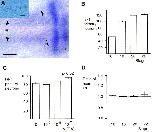 Fig. 4. Citral, an inhibitor of retinoic acid synthesis, inhibits the formation of primary neurons. (A) Functional assay of embryo movement at the tailbud stage in response to external stimulation. Embryos were grown from the late blastula stage to the early neurula stage in control (0.1à MBS), 10â7 M RA or 60μM citral and then in normal media to the tailbud stage (stage 28). Samples of 25 embryos were then analysed by lightly touching the embryo with a fine needle adjacent, but posterior, to the otic vesicle. The number of tailflips was then counted. Each batch of embryos was stimulated 50 times. Whereas control and RA treated embryos displayed a range of responses to stimulation, the citral treated embryos gave only the an occasional and short response. (BâD). NST expression in embryos treated with citral or citral plus RA. (B), embryos grown from the late blastula to early neurula stage in 40 μM citral show NST expression that is essentially normal (black arrow) in some, but decreased NST expression (open arrow) in other individuals. (C), The addition of 10â7 M RA at the late blastula stage to embryos grown in 40 μM citral results in the recovery of NST expression (black arrow). (D). Embryos grown in 60 μM citral have little or no NST expression (open arrow) though it is sometimes possible to distinguish weak NST expression (small black arrow). The addition of 10â7 M RA to these embryos results in the widespread rescue of NST expression (black arrow).