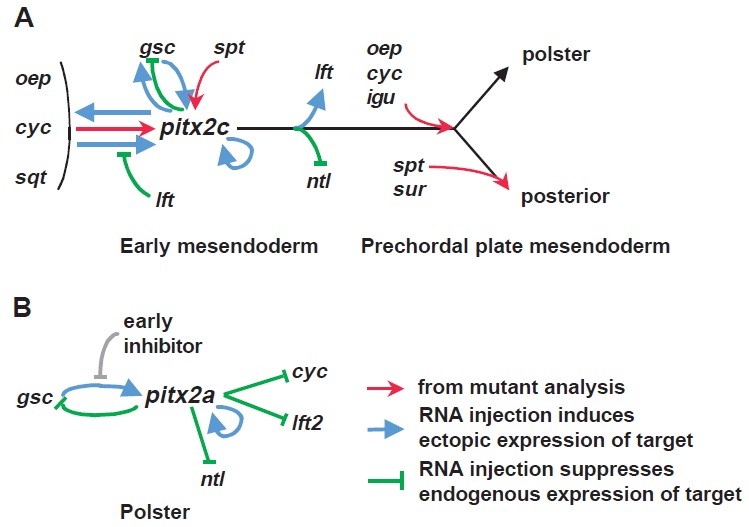 fate. (A) Regulation of pitx2c. (B) Regulation of pitx2a. Antagonistic