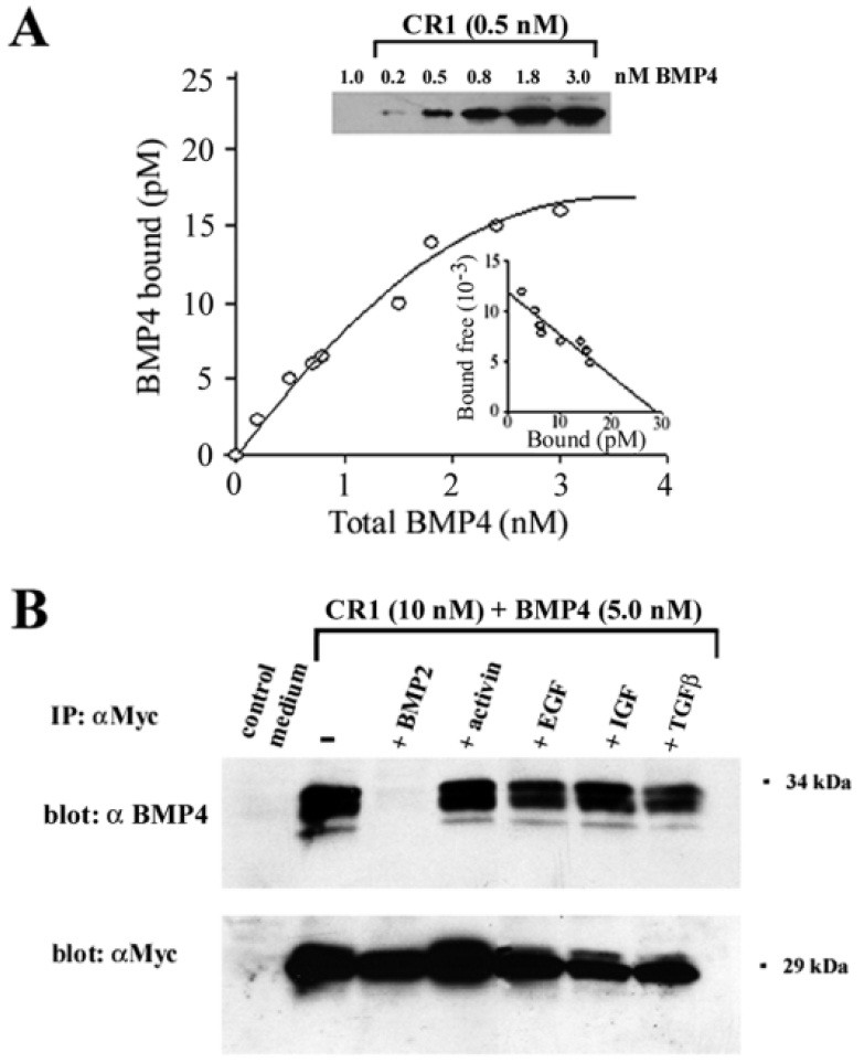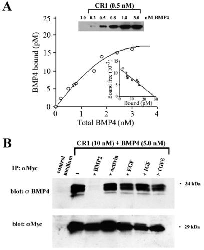 Fig. 3. Biochemical analysis of the binding of CR1 to BMP4.