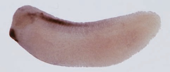 ppp3ca ( protein phosphatase 3, catalytic subunit, alpha isozyme ) gene expression in Xenopus laevis embryo, assayed via in situ hybridization, NF stage 22, lateral view, anterior left, dorsal up. |
