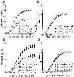 Coexpression of xKvβ with xKv1α subunits accelerates kinetics of activation. Time to half-maximum activation (t 1/2) as a function of voltage is plotted for recordings obtained from whole oocytes injected with Kv1.1α (left) or Kv1.2α (right) cRNAs in the absence and presence of xKvβ2 or xKvβ4 cRNAs. Representative currents are presented in Figure 3. Data obtained in the presence of either xKvβ are significantly different from those obtained in its absence; p values are all <0.0001. The number of oocytes recorded from are as follows: Kv1.1α alone, 72; Kv1.1α + xKvβ2, 70; Kv1.1α + xKvβ4, 35; Kv1.2α alone, 83; Kv1.2α + xKvβ2, 82; Kv1.2α + xKvβ4, 49. |