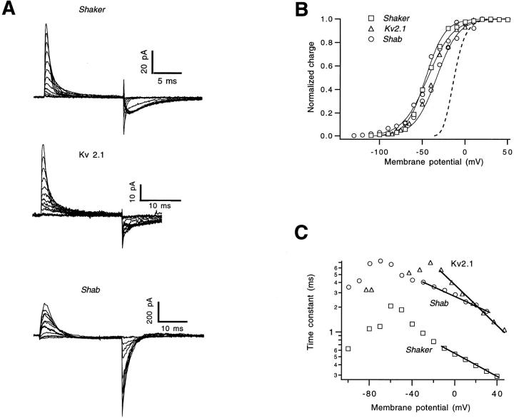Voltage sensitivity and gating charge in Shaker and Shab family potassium channels.