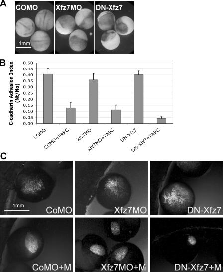 Sumanas, Xenopus frizzled-7 morphant displays defects in dorsoventral patterning and convergent extension movements during gastrulation. 2001, Pubmed , Xenbase