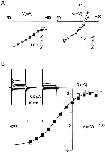 Figure A1. Simulations of slippage mode behavior. (A) Four state kinetic scheme used to simulate the slippage mode. (B) Simulated currents in response to voltage steps indicated in the inset. The parameters for the simulations on the left were: k012 = 8, 000 M−1 s−1, k021 = 2,000 s−1, k023 = 5 s−1, k014 = 120 s−1, k041 = 60 s−1, k034 = 100 s−1, k043 = 1,000 M−1 s−1, α′ = 0.3, α″ = 0.3, δ = 0.4, Nao = 0.1 M, Nai = 0.01 M, T = 20°C. The effect of alkylation (right) was simulated by a 10-fold increase in k014 and k041. (C) Expanded view of the traces in A, which also shows the steady state current levels under the two conditions. The broken line indicates zero baseline current. Note that the current scale (eu, electronic units) gives the apparent charge movement per cotransporter. |