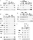 Figure 1. Inhibition of p300/CBP by E1A, E1AâRG2, and p300N interferes with mesoderm and endoderm development. A, Phenotypes of embryos injected dorsally at four-cell stage with E1A, RG2, DL120â 140 (DL), and p300N RNAs, shown at stage 25. E1A, DL120â140, and p300N-injected embryos cleaved and developed normally up through the late blastula stage (stage 9) but began to exhibit severe gastrulation abnormality from the early gastrula stage (stage 10.5). A failure of blastopore closure was observed in many of the injected embryos (stage 13). Most of injected embryos displayed a lack of any axial development at stage 25. The RG2-injected embryo is phenotypically identical to normal controls. RNA injected per embryo: 0.1 ng for E1A, RG2, and DL120â140; 2 ng for p300N. Note that because p300N mRNA and protein sizes are each approximately seven times of those for E1A, the efficiency of synthesis and the local concentration of p300N protein are likely to be much smaller than those of E1A in the embryo if the same amount of RNA were to be injected. B, Sagittal sections of a RG2 (top) and an E1A-injected embryo (bottom) at stage 25. Note that the RG2-injected embryo exhibits normal development, whereas the E1A-injected one lacks any axial tissues, such as the notochord and muscles. Axial tissues are absent in all sections (data not shown). C, Inhibition of Xbra expression examined at stage 10.5 by in situ hybridization. Note that the control (CON) and RG2-injected embryo exhibit a uniform circumferential expression pattern, whereas expression is abolished on the injected side (either dorsal or ventral) in E1A, DL120â140, or p300N-injected embryos. Dorsal is to the right. RNA injected per embryo: 20 pg for E1A, RG2, and DL120â140; 500 pg for p300N. D, Lack of inhibition of Xnr3 expression by in situ hybridization analysis, examined at stage 10.5. Note that the endogenous Xnr3 expression is not blocked by dorsally injected E1A, and an ectopic induction of Xnr3 by ventrally injected b-catenin (0.5 ng RNA per embryo) is not inhibited by coinjected E1A or p300N. Ectopic activation of goosecoid expression by b-catenin was inhibited significantly by E1A, as expected (data not shown), because goosecoid expression depends on mesoderm-inducing signals (Watabe et al., 1995). Dorsal is to the right. RNA amount injected is the same as in C. E, Inhibition of Xsox-17a and Mixer expression assayed by quantitative RT-PCR. In this and all of the following RT-PCR results, EF-1a is used as a control for the template amount. The RNA amount injected is the same as in A. F, Immunoblot of stage 9 embryo extracts to examine protein levels of E1A, E1AâRG2 (RG2), and E1AâDL120â140 (DL) from injected synthetic RNAs. CON, Uninjected control extract. |