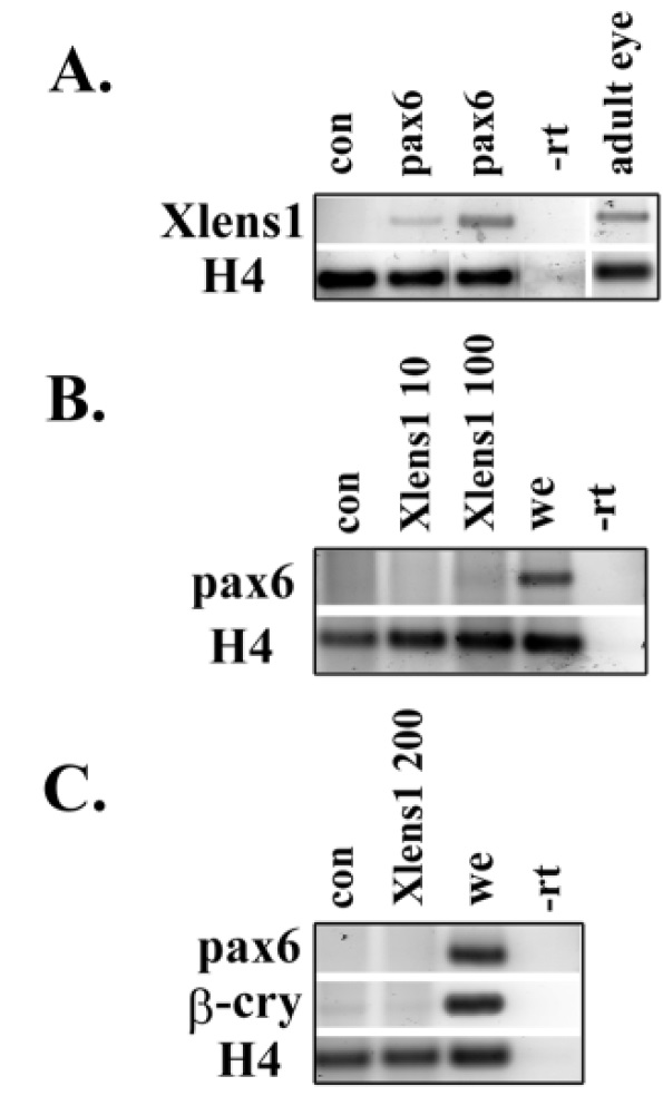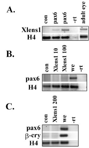adult eye (lane 5). (B) Xlens1 does not induce expression of pax6 in