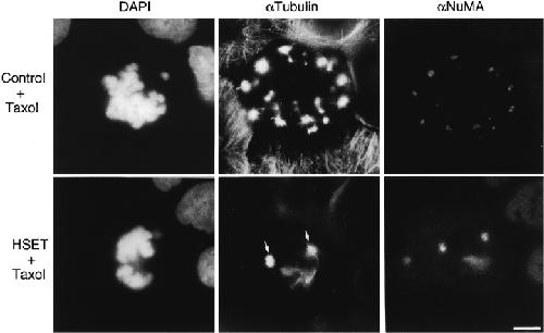The kinesin-related protein, HSET, opposes the activity of Eg5 and cross-links microtubules in the mammalian mitotic spindle.
