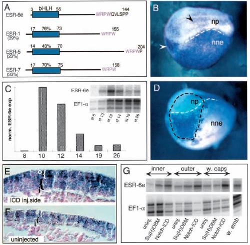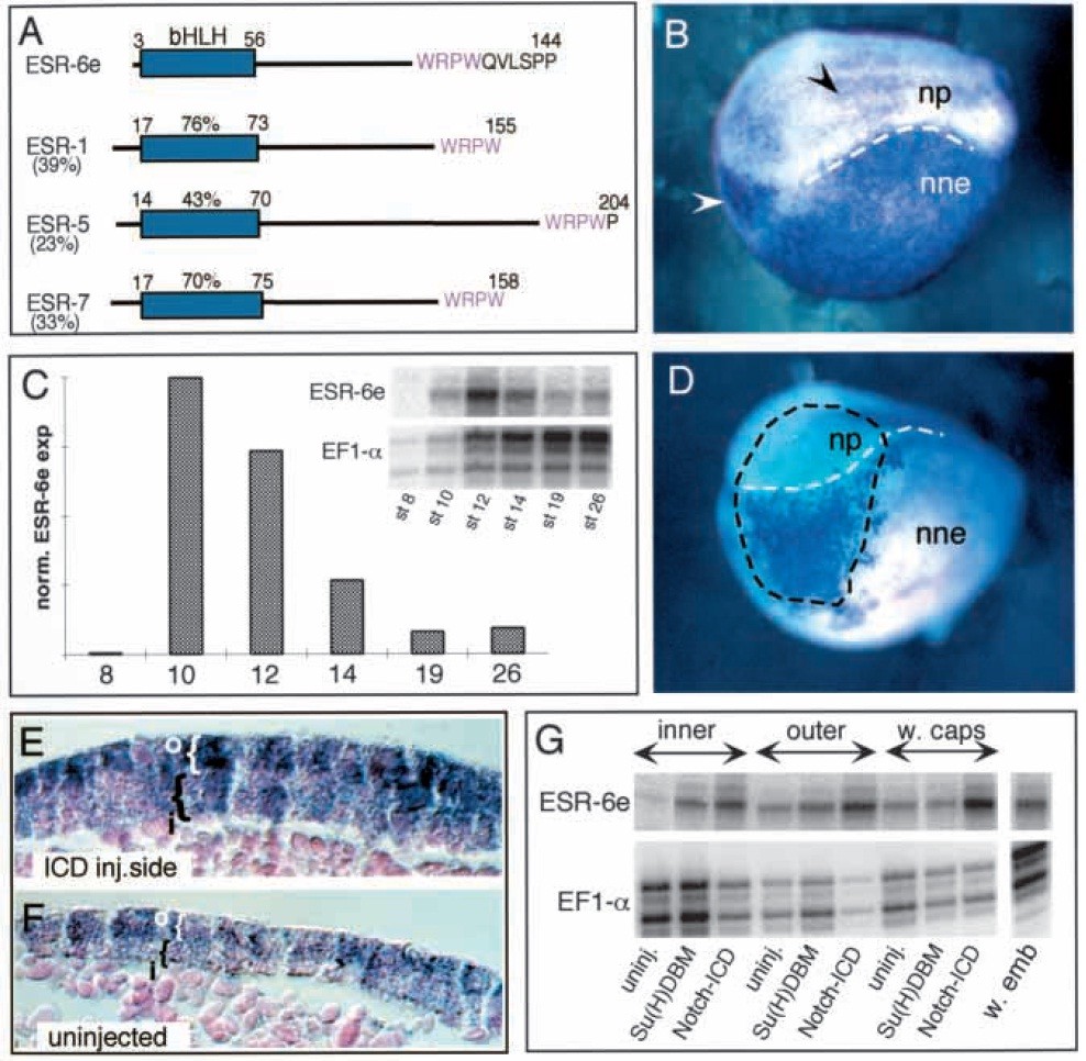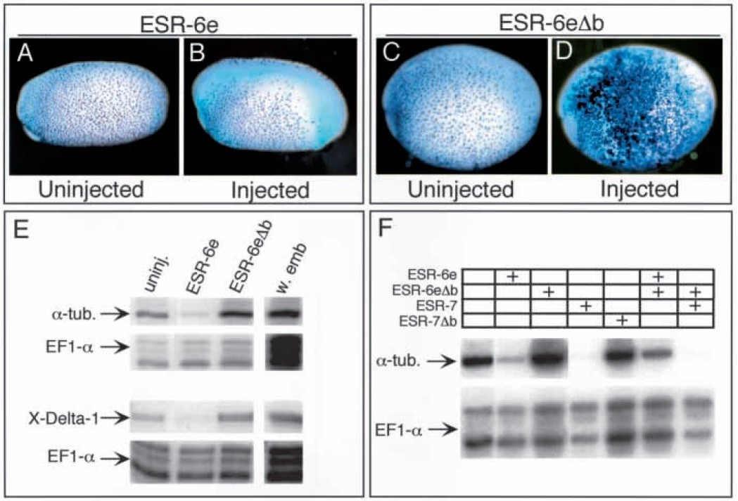 embryo as in D. (G) RNase protection assay to measure the levels of ESR-6e RNA in ectoderm isolated from embryos injected with RNA