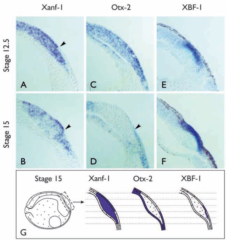 the anterior neurectoderm. Xenopus embryo hybridized in