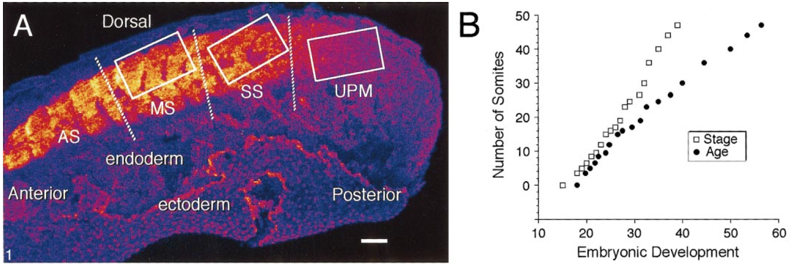 2: AS, anterior somites; MS, maturing (middle) somites; SS, segmenting somites; and UPM, unsegmented paraxial mesoderm. Anterior is