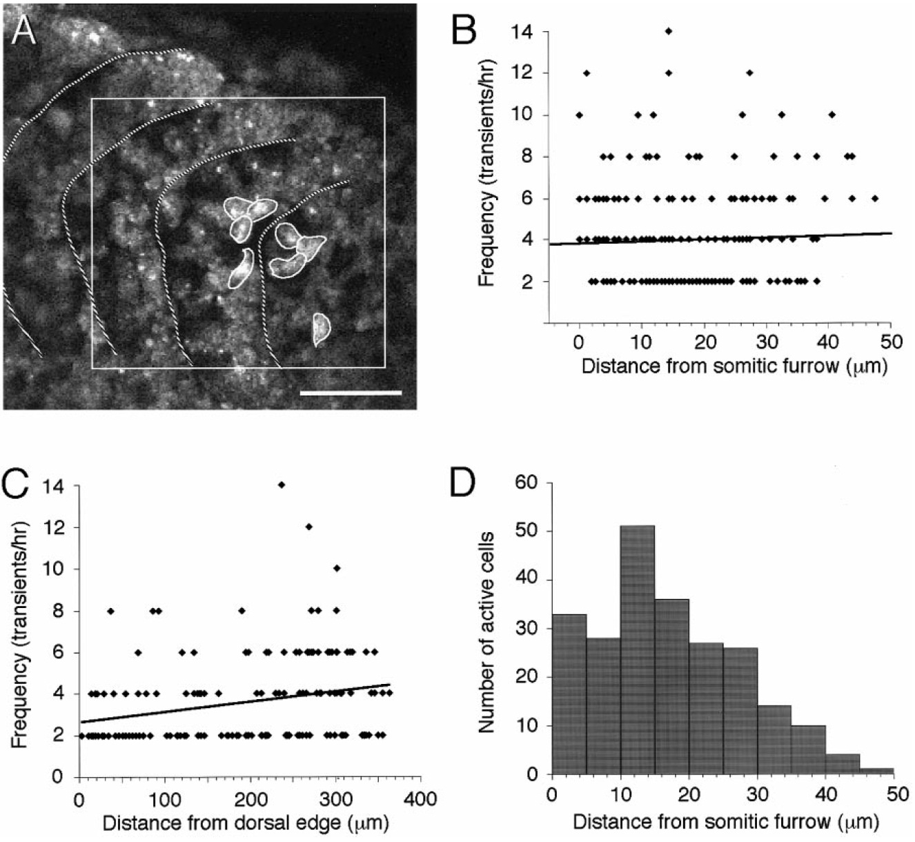 region). (A9) Representative trace of activity over 30 min in cell indicated. (B) Region of somite segmentation (SS). Image shows a group of