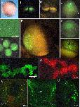 Fig. 2. Xpat protein (red) is a constituent of germ plasm. (A) Anti-Xpat heavily stains particles concentrated in the mitochondrial cloud (mc) of a stage I oocyte, and pre-clouds (pc) around the nucleus (n). (B, C) At stage II, Xpat is still focused in the mitochondrial cloud, along with endogenous Xpat mRNA, detected by injecting fluorescent antisense Xpat (green, overlay, C′). This oocyte is viewed looking in from the point where the mitochondrial cloud touches the cortex. (D) Germ plasm islands in the vegetal cortex of a stage VI oocyte, detected by anti-Xpat (D), mitochondrial anti-VDAC (D′, overlay in Dʺ). (E) Field of germ plasm islands at the vegetal pole (see inset of the unfertilised egg). (F) Islands at the 2-cell stage, shown in transverse optical section. (G) A PGC deep in the endoderm of a stage 28 embryo, also stained with DAPI (left, blue). (H) A PGC, immunostained for Xpat, and the cellular outline drawn in grey, demonstrates similarity to a conventionally stained PGC in the tailbud embryo (I), from Kamimura et al. (1980). (J) Nuclei in epidermal cells of tailbud embryos also contain Xpat. Scale bars, 20 μm. |