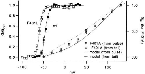 Ledwell, Mutations in the S4 region isolate the final voltage-dependent cooperative step in potassium channel activation. 1999, Pubmed , Xenbase