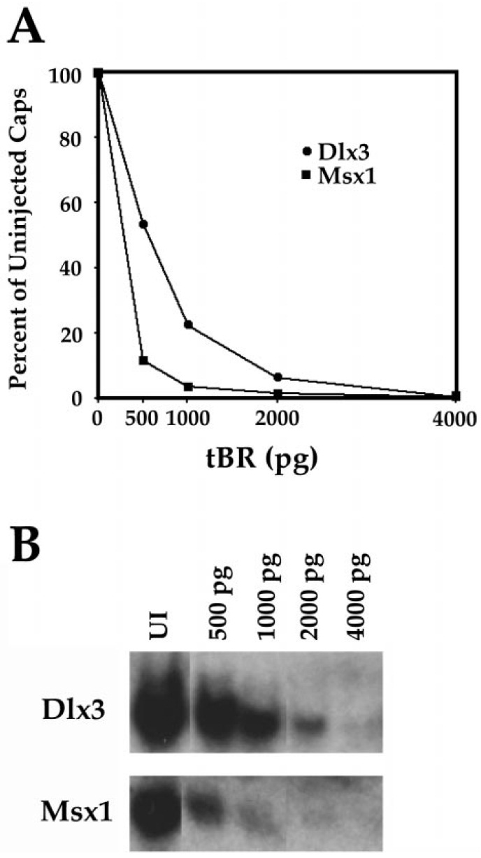 encoding tBR, Msx1, and Dlx3. Animal caps were removed from