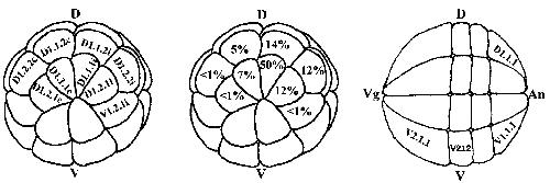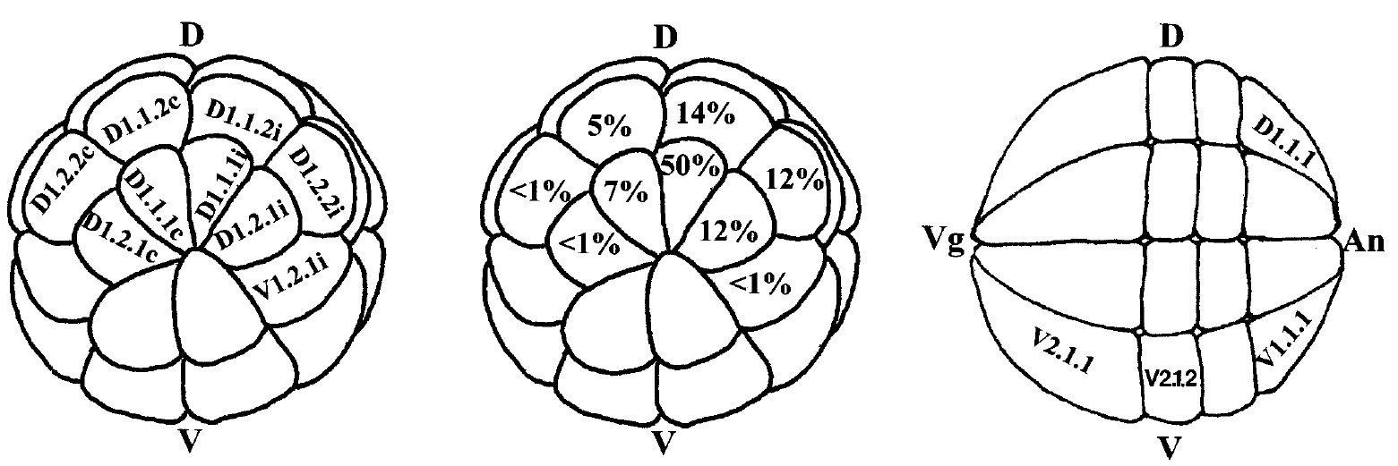 V, ventral; An, animal pole; Vg, vegetal pole. The nomenclature used is that assigned by Jacobson and Hirose (1981). D1.1.1 is equivalent