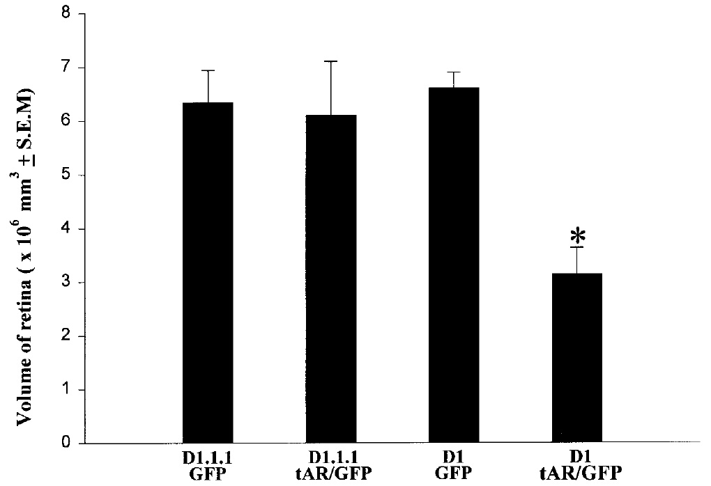 FIG. 2. Volumes of control and experimental retinas were measured to indicate whether mRNA injections altered retinal size. Retinal