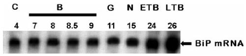 employing the [32P]-labeled BiP cDNA clone. The same RNA blot was