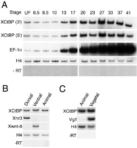 The temporal expression of XCtBP was analyzed by RT-PCR using