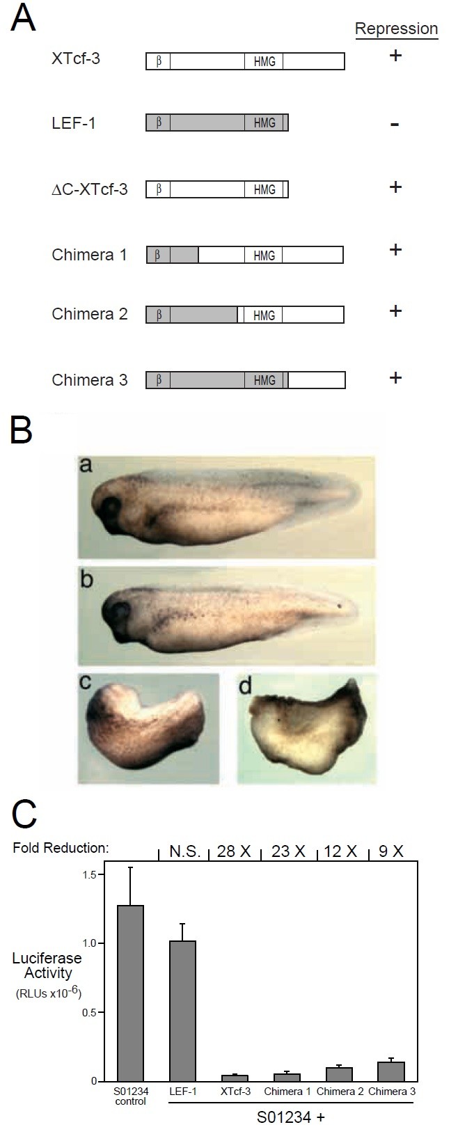 Chimeras 1, 2 and 3, like XTcf-3, repress the siamois reporter gene,