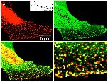 (D, boxed region in panel C) reveal that most of the red spots representing focal complexes are in register with green spots (yielding yellow), indicating close cell �