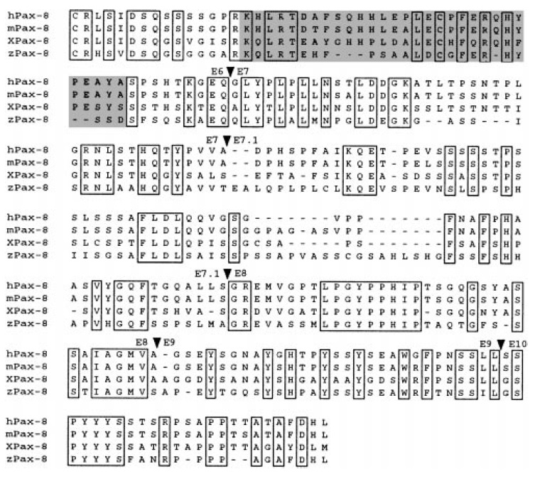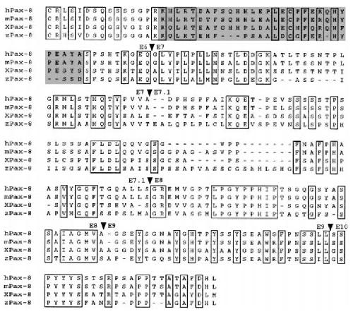 the human, mouse, and zebrafish Pax-8 sequences are listed in Figure