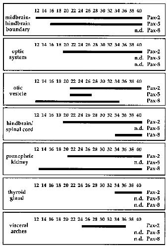 Pax-2/5/8 gene family during Xenopus embryogenesis. The duration